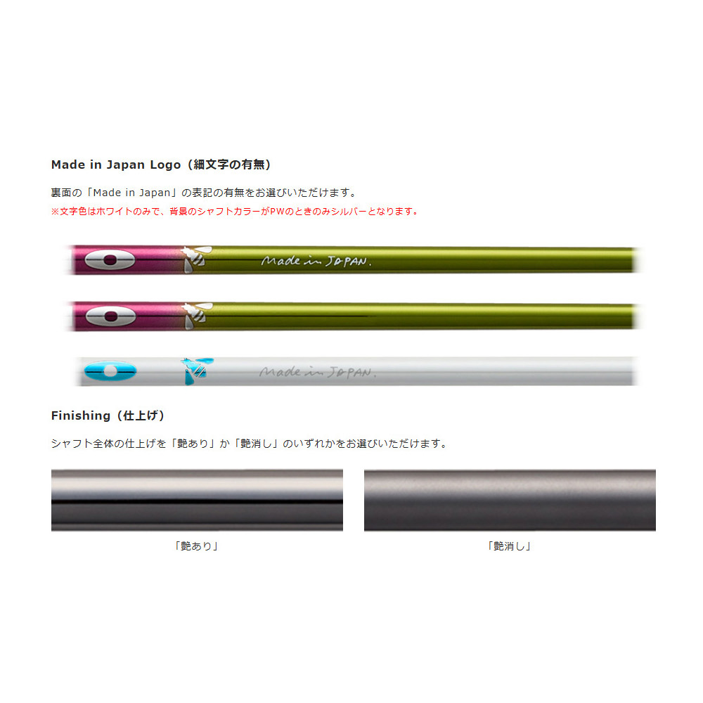 シャフト全体の仕上げを「艶あり」か「艶消し」のいずれかをお選びいただけます。