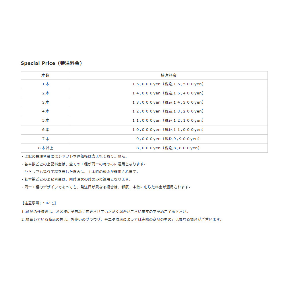 新規購入いただくシャフトのカラーを自分好みにカスタマイズするサービスとなります。