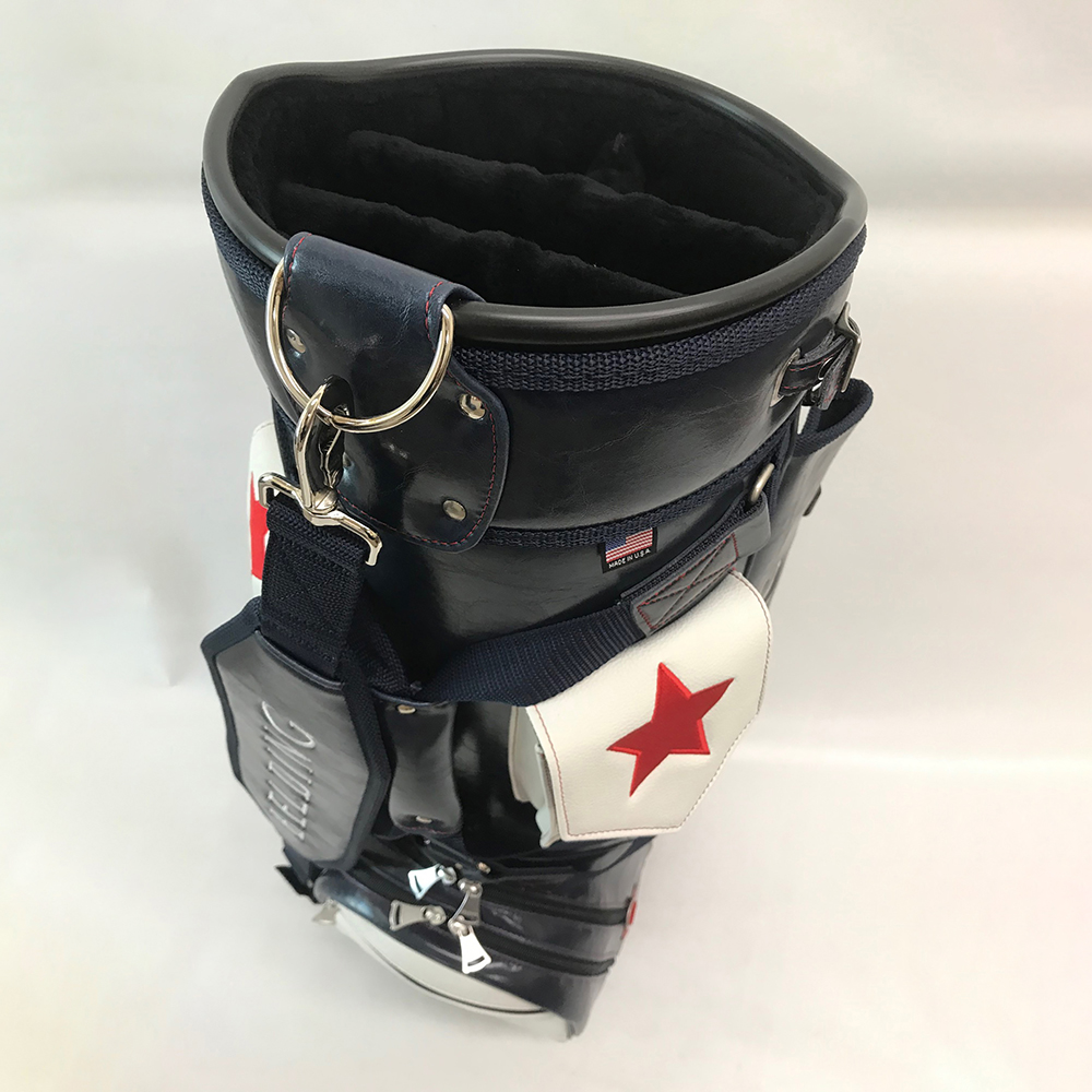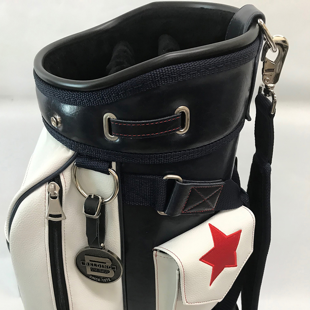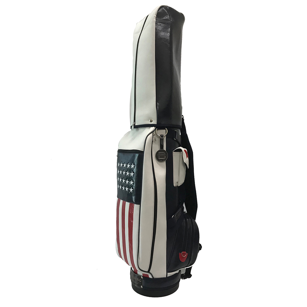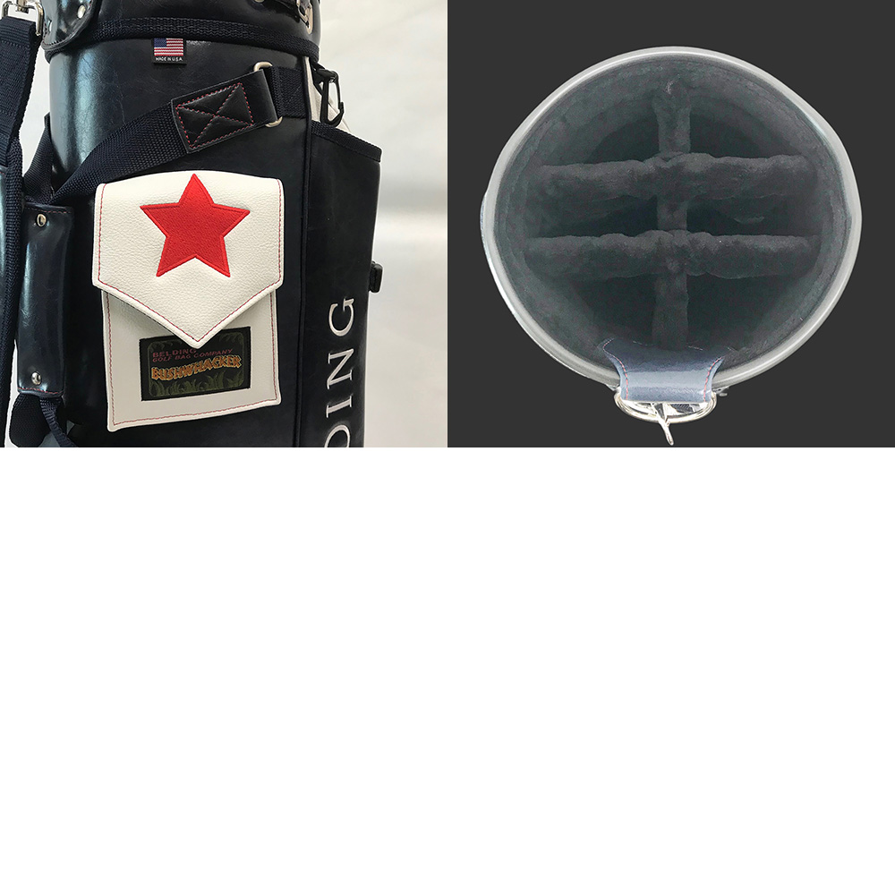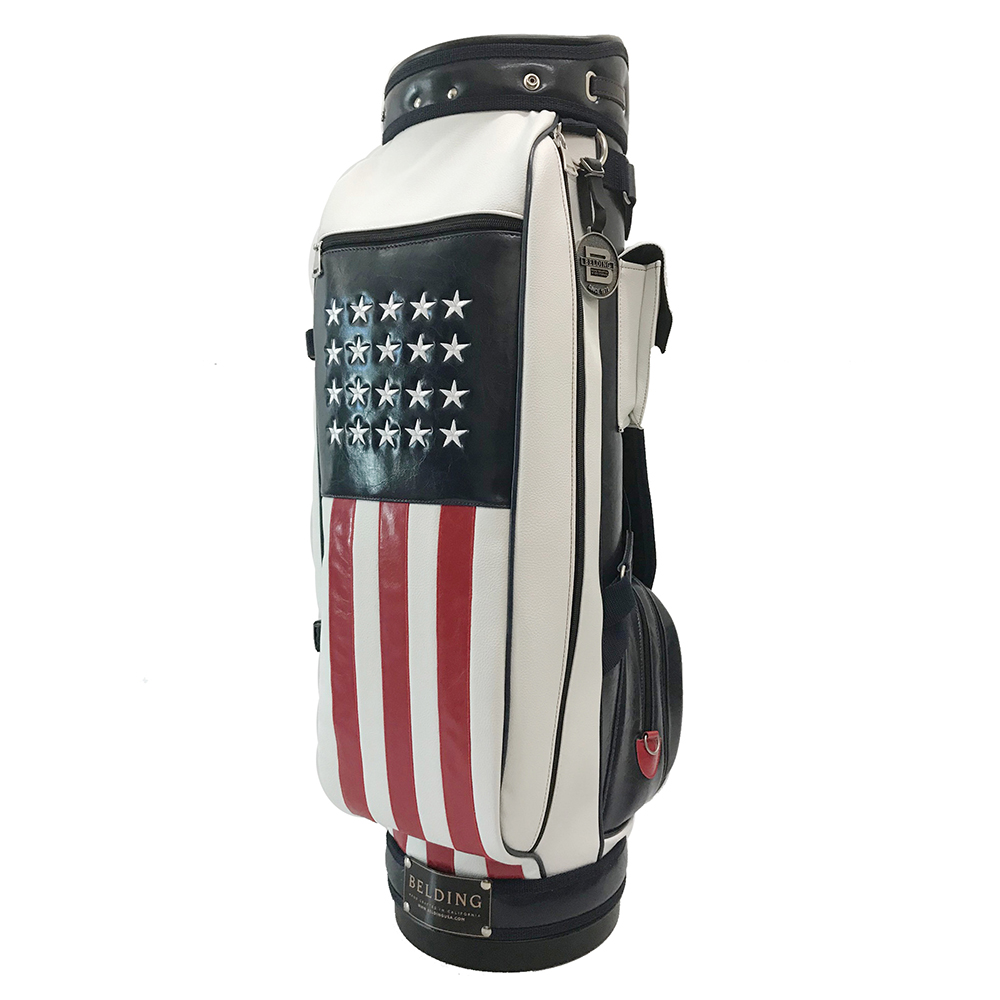 ベルディングのキャディバッグの代名詞として長年愛されてきた定番人気のブッシュワーカー。アメリカの国旗をモチーフにしたレアモデルです。(濃い色の部分は濃紺です。)