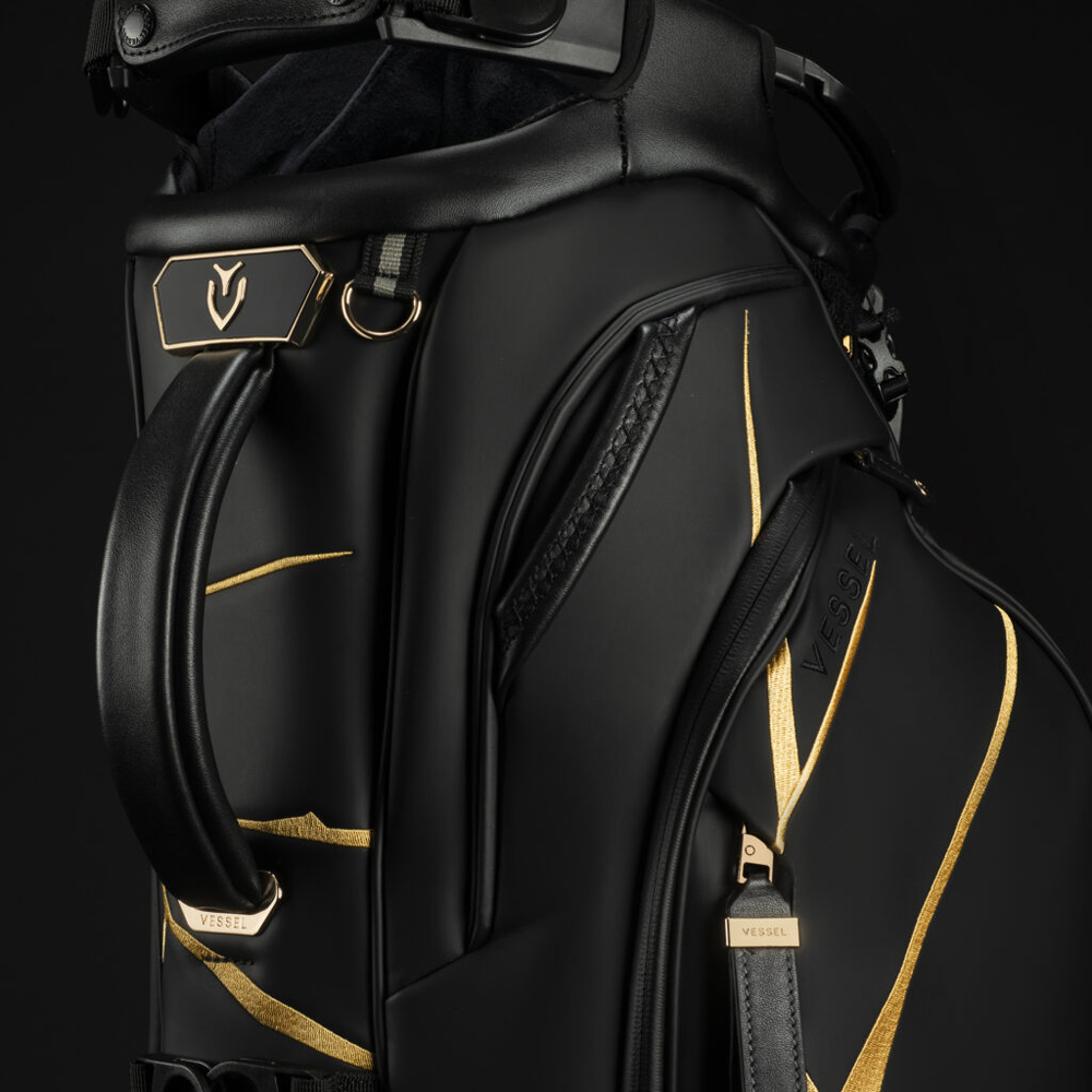 欠けた部分さえも美に変える精神を表現した「金継ぎ」デザインの特別ゴルフバッグ。優雅さと耐久性を兼ね備えた特別な一品