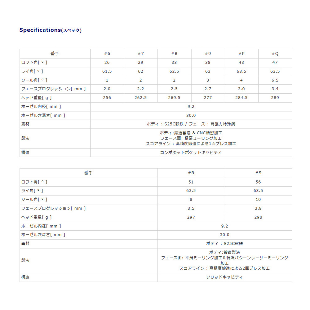 ロフト:#8(33度)、#9(38度)、#P(43度)、#Q(47度)