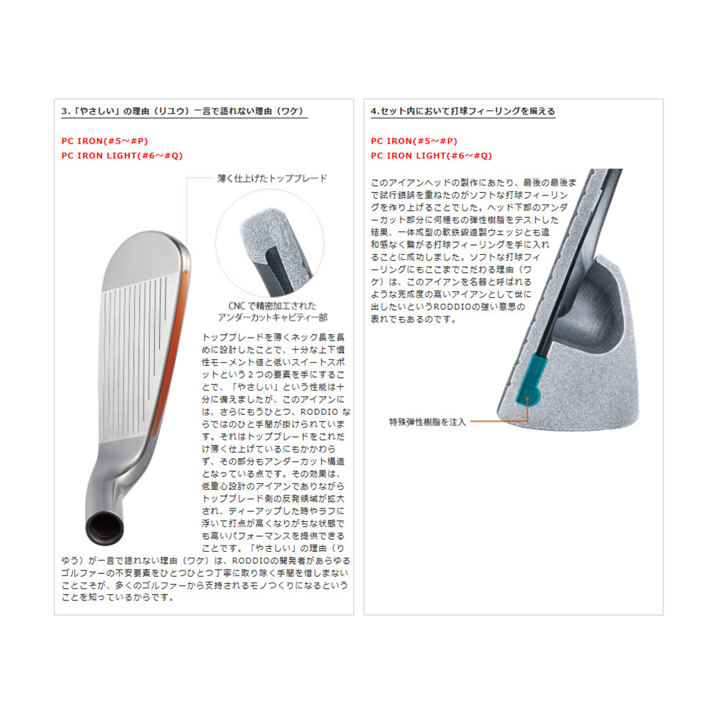 RODDIO ロッディオ PC IRON LIGHT アイアン #8~#Q(4本セット)《 シャフト:ロッディオ 》